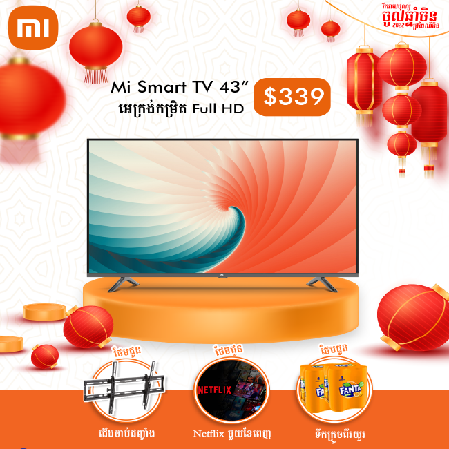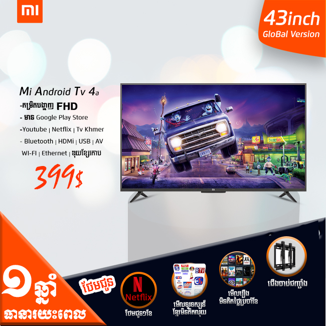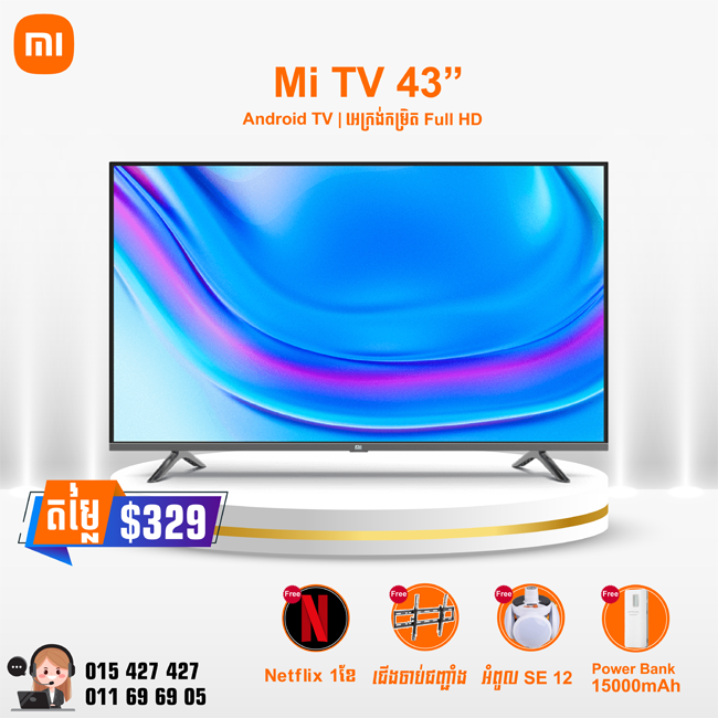 Mi Smart TV 43" អេក្រង់កំរិត FHD អាចទស្សនា Youtube ដល់កម្រិត FHD មាន App អាចមើលរឿងHollywoodថ្មីៗ Bluetooth & Wifi Google Play Store & Chromecast Built-in Google A...