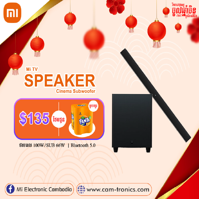 ធ្វើអោយបន្ទប់លោកអ្នកទៅជារោងកុនបានយ៉ាងងាយជាមួយ Xiaomi TV Sound Bar Cinema Subwoofer 100W តម្លៃ $175 នៅសល់ត្រឹមតែ $135 តែប៉ុណ្ណោ ថែមជូន Ecowipesភ្លាមៗ សម្លេង Surround Sound ជាមួយ Cinema mo...
